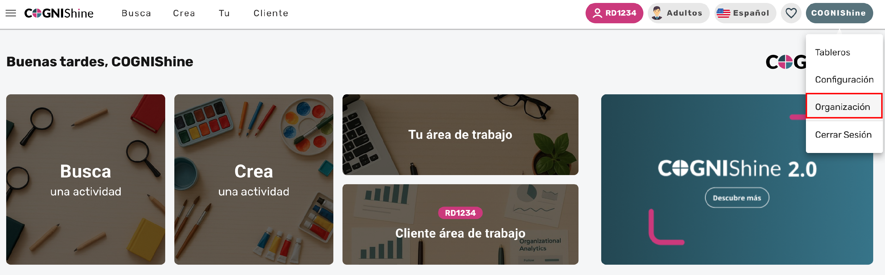En el menú desplegable, selecciona “Organización”.