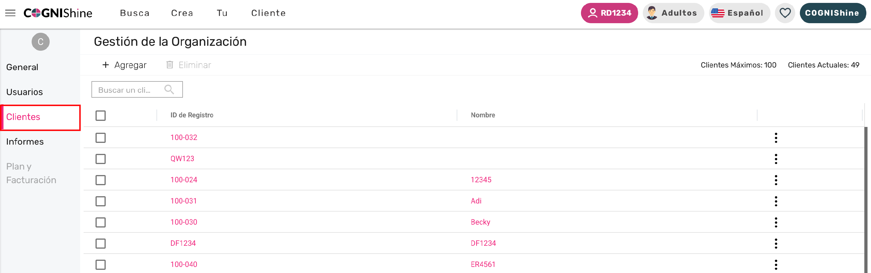 Puedes eliminar perfiles de clientes directamente desde la plataforma de Cognishine.
